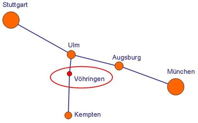 Von der A7 kommend die Autobahnausfahrt Vöhringen abfahren und auf der Westseite der Autobahn nach Vöhringen hinunterfahren. Vor Vöhringen am ersten Kreisel geradeaus fahren, unter der Bahn hindurch und in die Stadt hinein. Am Kreisel in der Stadt rechts abbiegen, das ist bereits die Memmingerstraße.